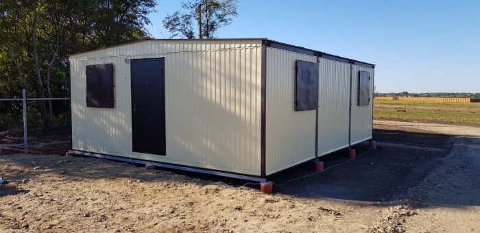 Применение: малый офис на 3-5 рабочих мест, прорабская + кабинет инженера на стройке, небольшой магазин или павильон, жилье для 2-3 человек, медпункт, пост охраны с комнатой отдыха.