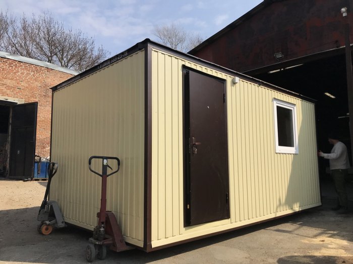 Бытовка для прораба, бежевый профлист с размерами 5.0x2.4x2.5 м. Внутренняя отделка выполнена из МДФ, внешняя - Цветной. Бытовка оснащена 1 шт. окнами/окном и дверью. Термоизоляция и гидроизоляция бытовки состоит из: Полиэтиленовая пленка 100 мкм. и Минеральная вата KNAUF 50 мм., что позволяет сохранять приемлемую температуру в помещении. Срок гарантии составляет: 6 мес. Страна производства - .