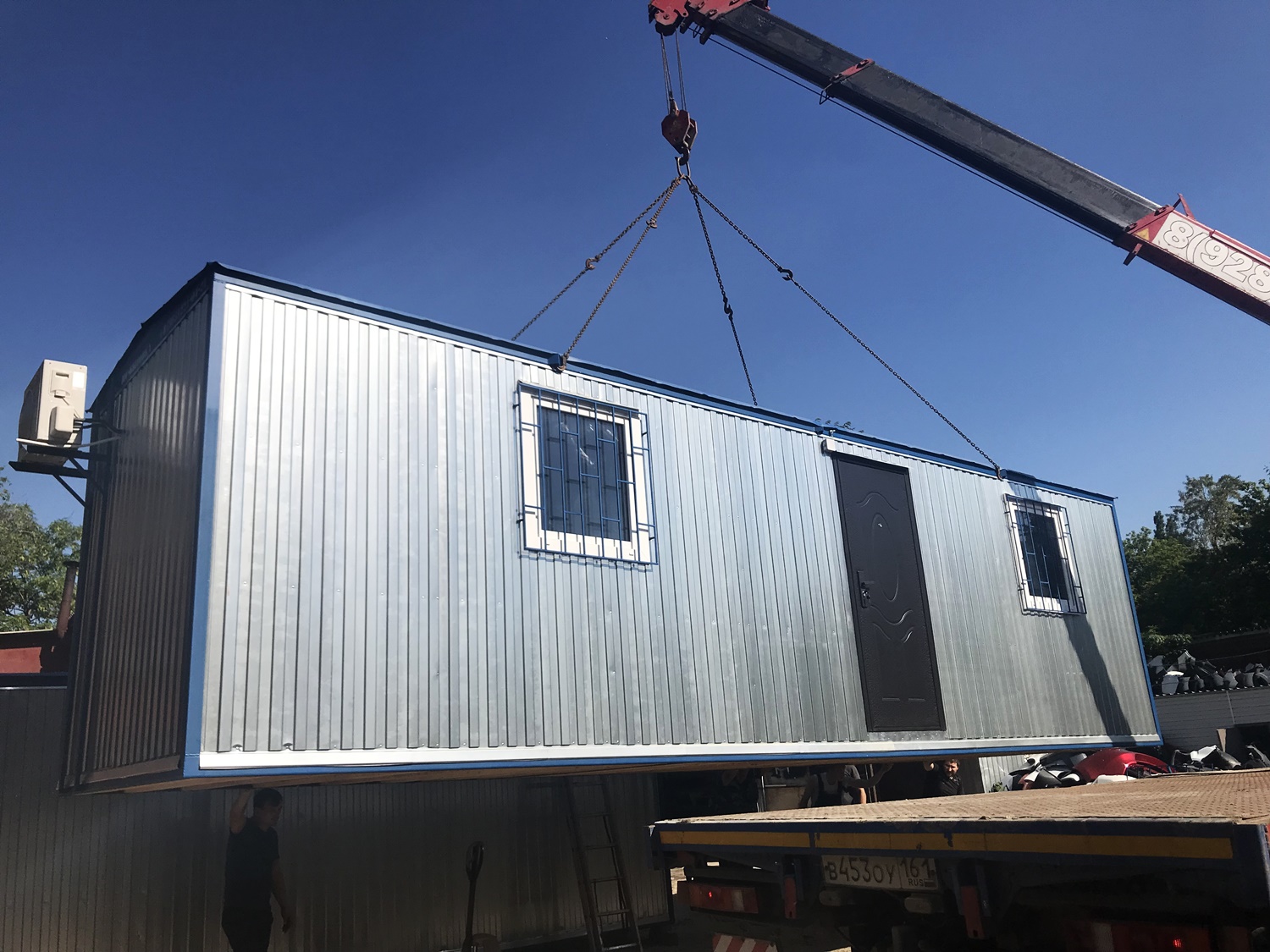 погрузка бытовки 6 м краном-манипулятором