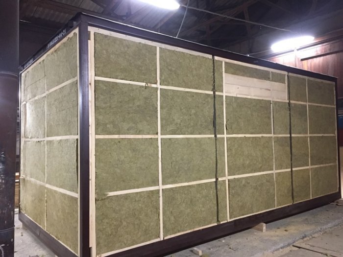 - Утепление 100-150 мм (минвата или пенополистирол) по всему контуру. Коэффициент теплопередачи 0,35-0,45 Вт/(м²·°C) — как у жилых домов.