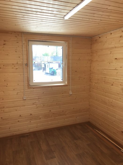 • Окно — металлопластиковое окно со стеклопакетом (два стекла), поворотное, 900 × 1000мм, три петли, с возможностью регулирувки;