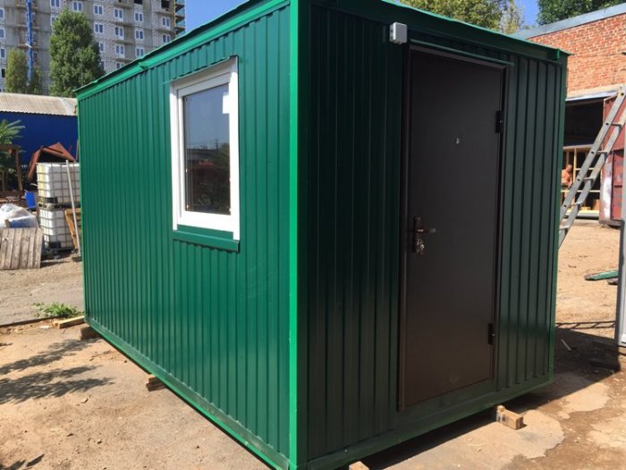 Бытовка жилая с зеленым профнастилом